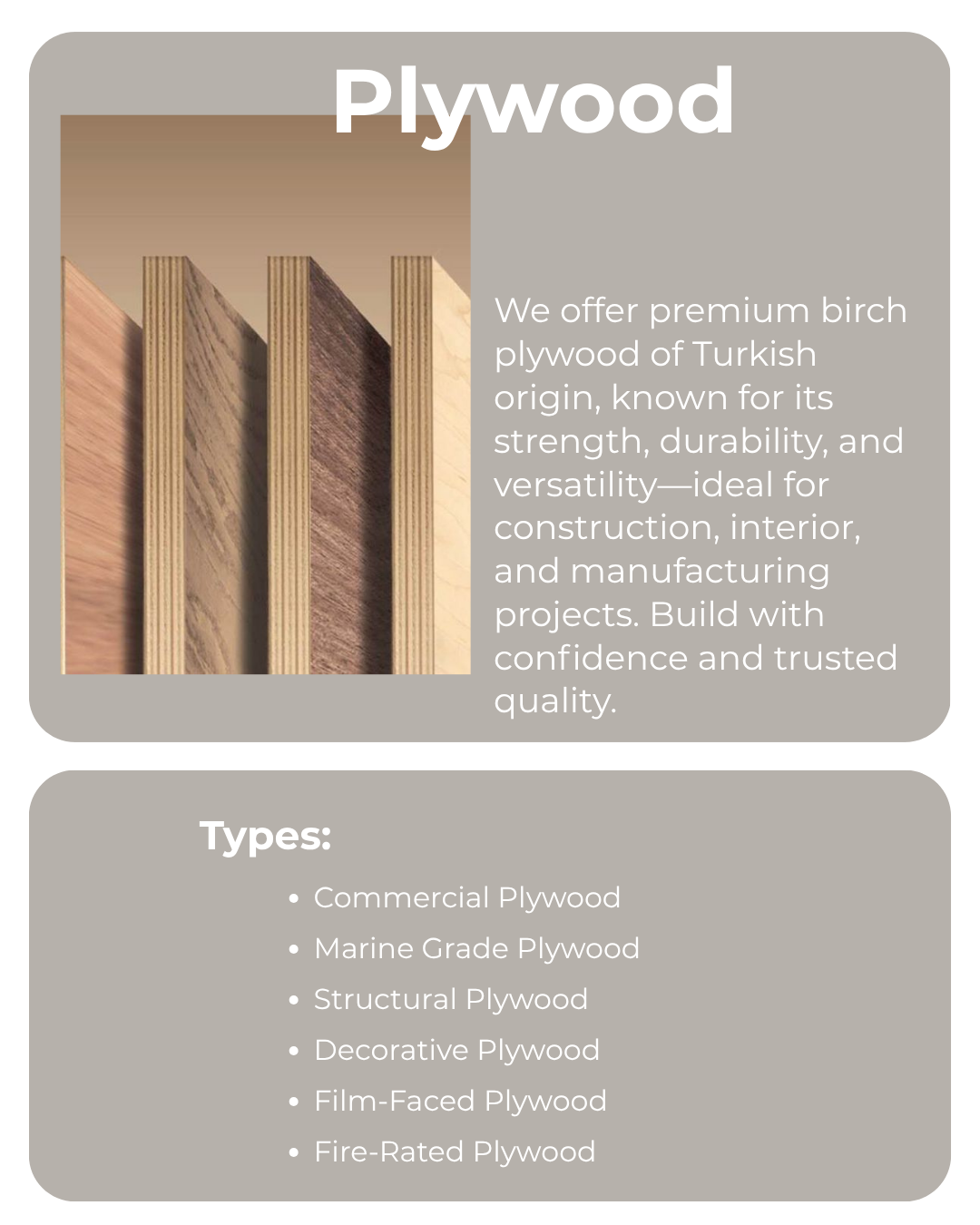 connecting businesses with high-quality products from around the globe. With over 20 years of experience in technical design, implementation, and consultancy, we specialize in trading building and finishing materials used in construction, as well as industrial raw materials.